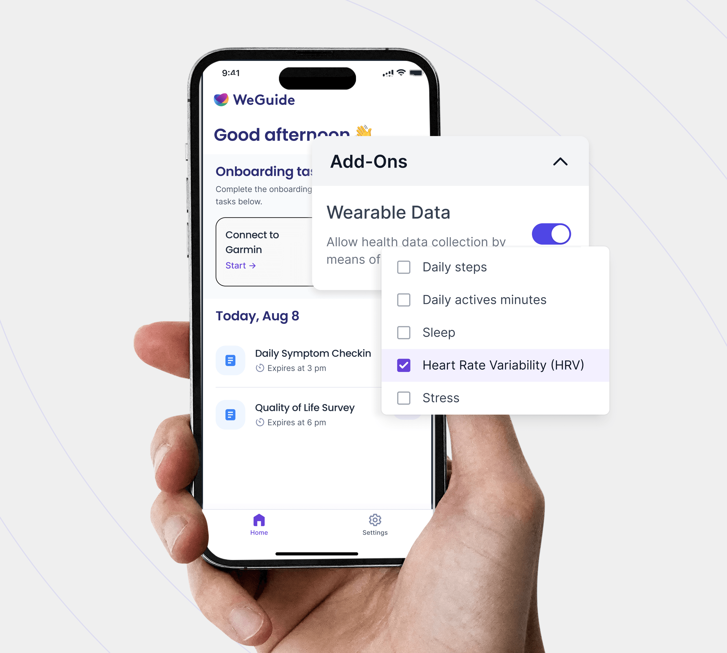 WeGuide combines eCOA, eConsent, data collection, and telehealth in a single platform with whitelabel apps under your own brand.