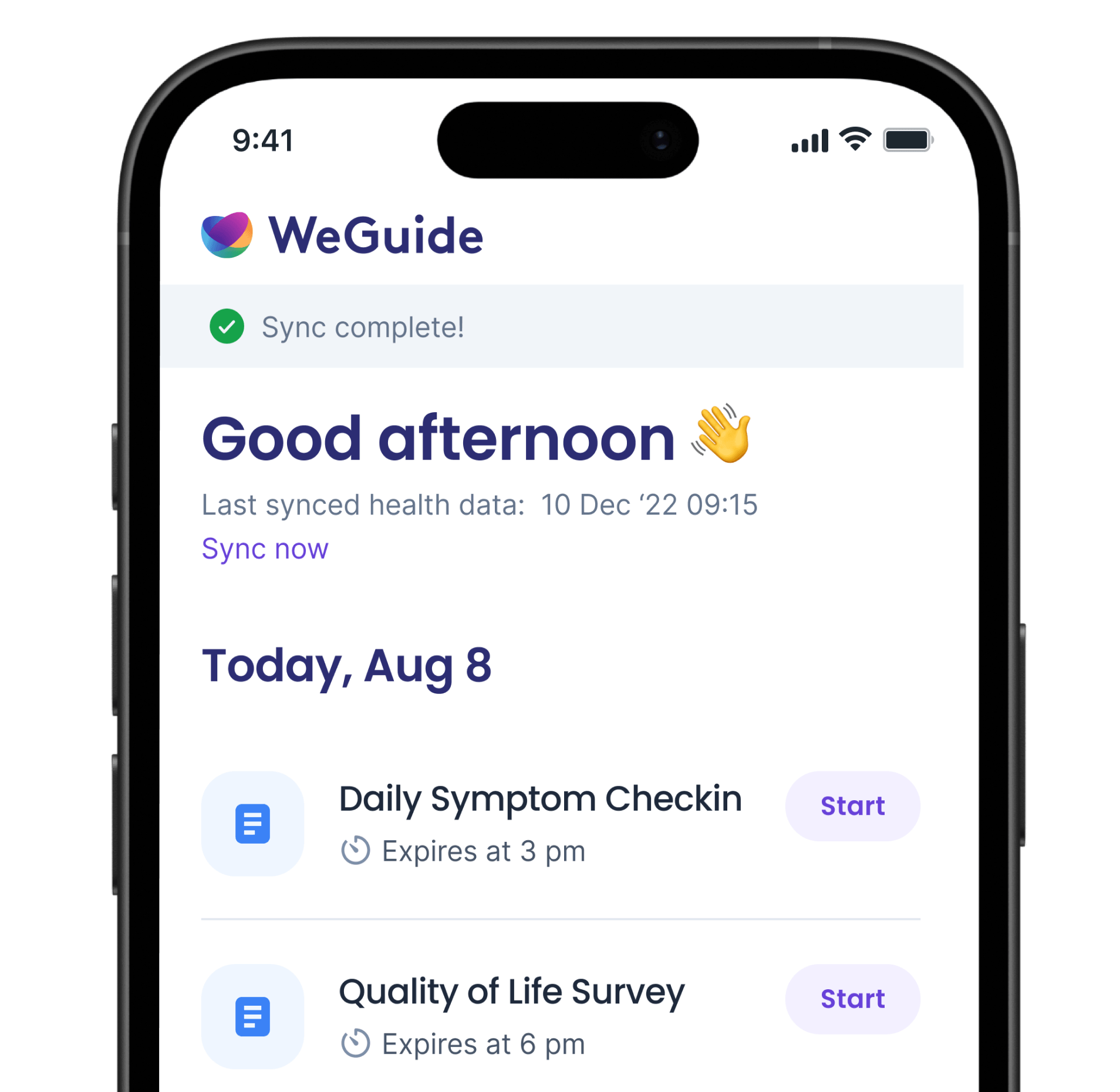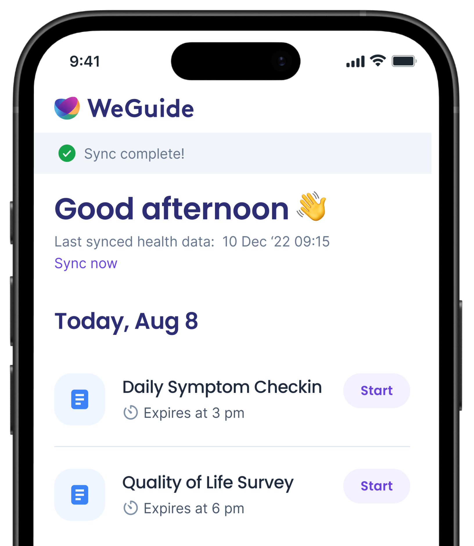 Gather high-frequency data seamlessly through a single app. WeGuide connects with Apple Health, Garmin, and medical sensors so participants can share their info easily.