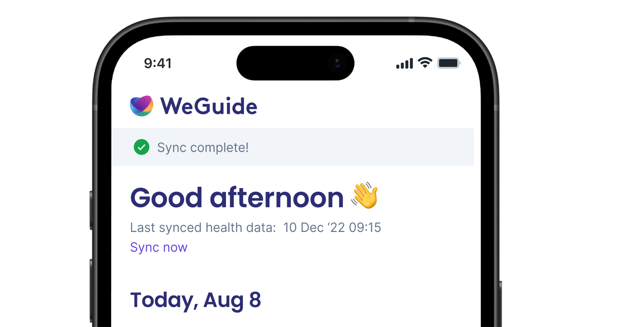 Health data syncs in the background and is securely stored on WeGuide's servers. You can export it whenever you need.